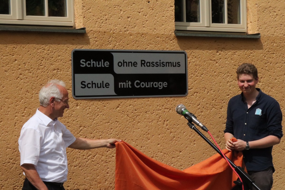 Diese Tat bewegte die SMV (Schülermitverwaltung) gemeinsam mit unserer Schulsozialarbeiterin zu einem neuen Schritt. Schüler und Lehrer entschieden sich mit einer Unterschriftensammlung, sich für den Titel „Schule ohne Rassismus - Schule mit Courage“ zu bewerben, um ein Zeichen zu setzen, erzählte Schülersprecher David Kürschner vor der Titelverleihung.