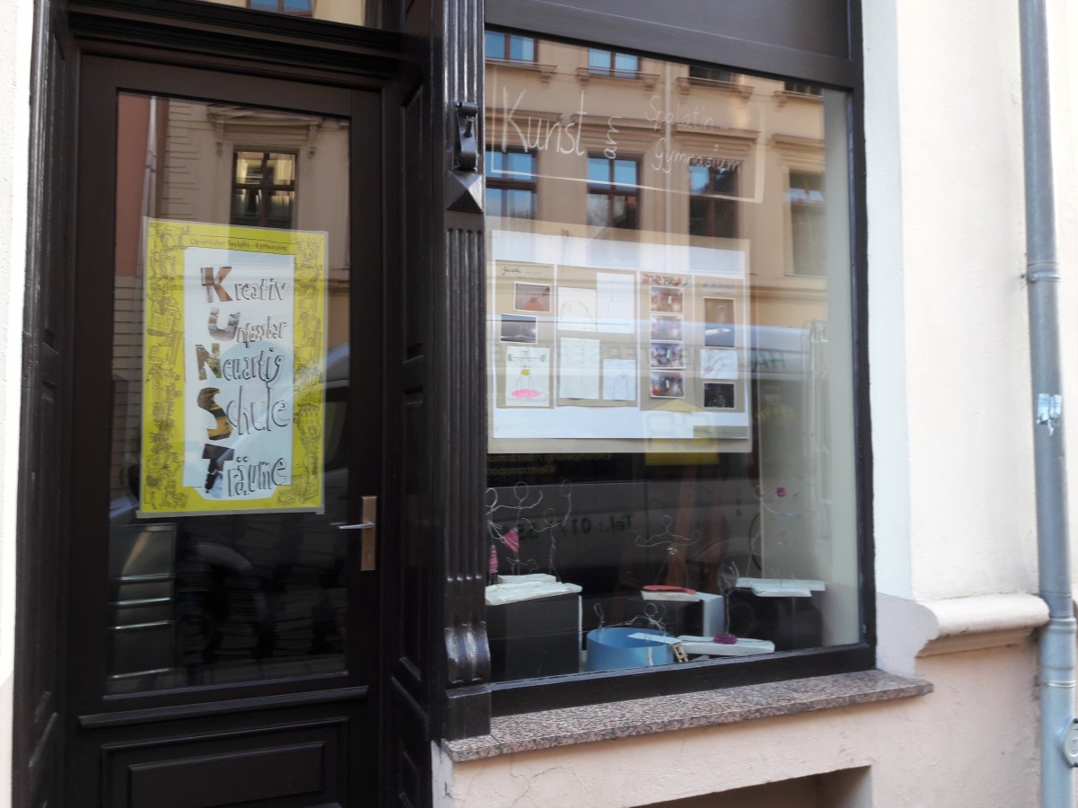 Dass Kunst aus Schülerhand nicht ausschließlich die Flure des Schulgebäudes ziert und damit wechselnd zeigt, wie vielfältig und interessant das kreative Schaffen der Spalatiner aller Altersstufen ist, beweist die aktuelle Gestaltung von Schaufenstern in der Johannesstraße. Herr Rothe, Rechtsanwalt in Altenburg, sagte begeistert ja und stellte seinen Laden zur kreativen Ausgestaltung zur Verfügung. Das gemeinsame Anliegen, der Stadt ein lebendiges Antlitz zu geben, scheint ein Stückchen weit gelungen. Zu sehen sind Arbeiten auf Leinwand aus dem Kurs Darstellen und Gestalten der jetzigen 10a sowie Drahtfigurinen, Fotos und Zeichnungen der Klasse 7b. Das Projekt geht in die nächste Runde...