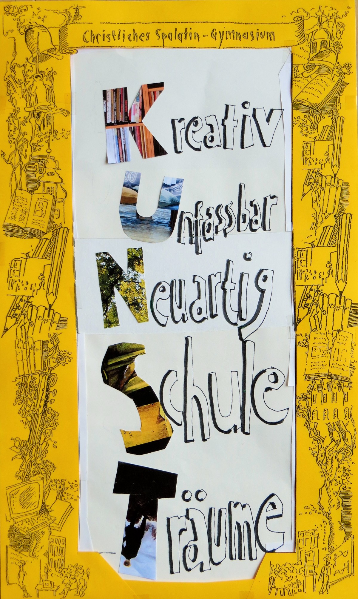 Das Steinzeit- und Dreamhouse-Projekt in Klasse 5, das Regelwaldprojekt in Klasse 6, die Renaissancewerkstatt in Klasse 7, Kreatives auf der Bühne oder medial umgesetzt im Rahmen des Unterrichtsfaches MuKuDS (Musik/Kunst/Darstellendes Gestalten) in Klasse 9 und Projekte im Kunstkurs der Oberstufe bleiben oft lange im Gedächtnis. Ausstellungen und Aktionen im Rahmen der Altenburger Frühlingsnacht oder aktuelle Schaufensterausstellungen zeigen, wie aktiv und engagiert Kunst in Schul- und SchülerInnenleben eingebunden wird. Eben Lernen und Gestalten mit Kopf, Herz und Hand. „So muss Schule und Lernen sein.“, so das Fazit einer Abiturientin mit Blick auf Kunst am Spalatin-Gymnasium. Wir hoffen, dass dies viele auch so sehen.